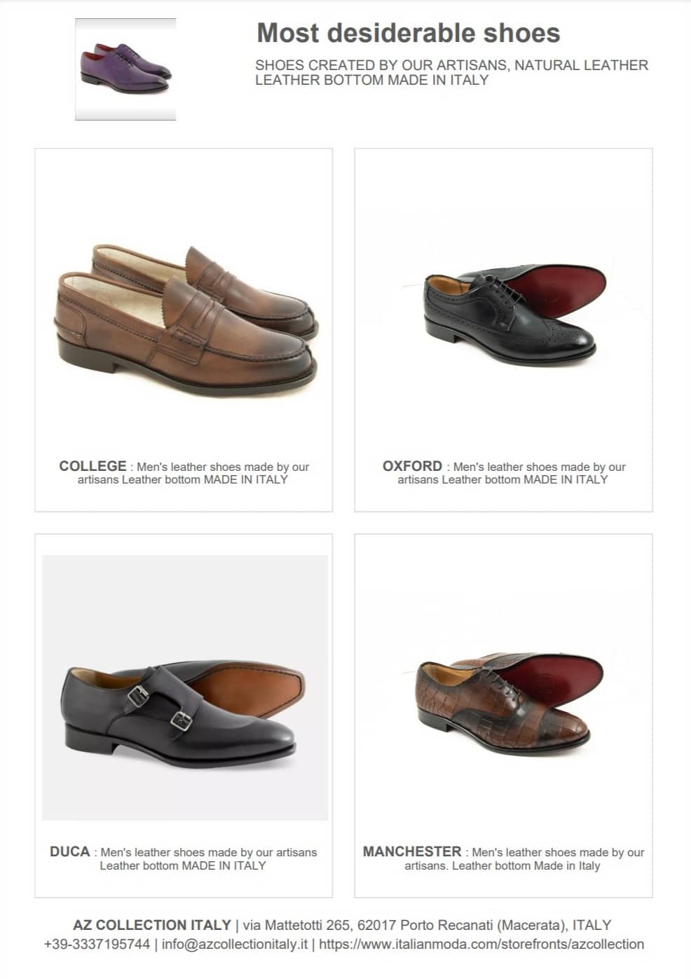 Alessandro Collection Italy is an Italian fashion company that produces footwear in natural leather exclusively made in Italy. Low minimums quantities with excellent value for money.