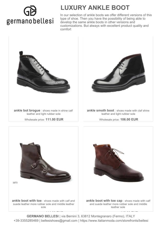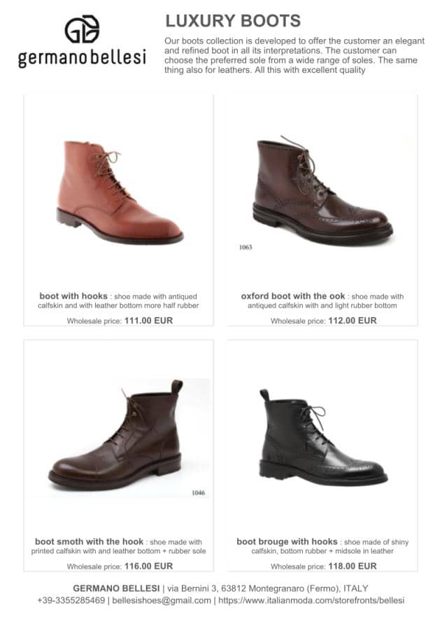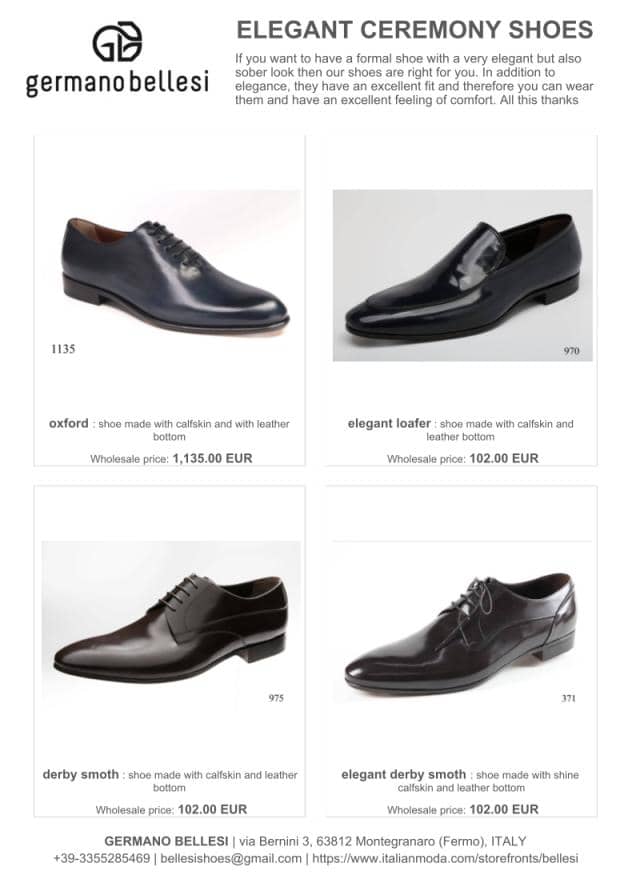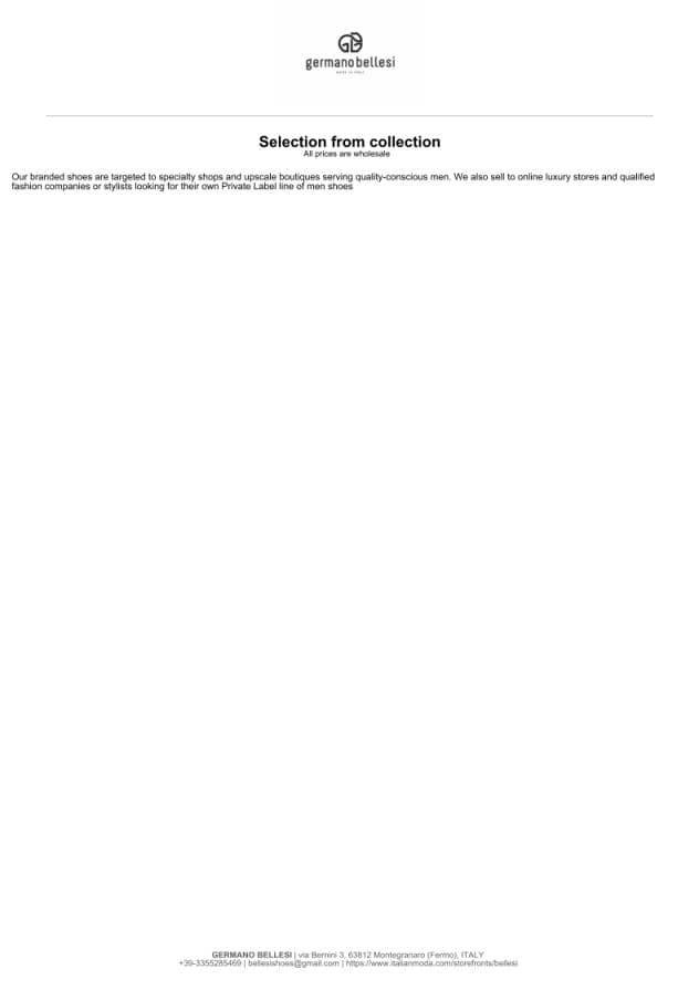 The brand takes the name of its founder, Mr. Germano Bellesi: a 40-year experience in shoe production and trading, sharing his deep knowledge of the footwear industry with his customers. Since 2001 he has been designing and producing his own line of fine men's shoes. BELLESI is your best partner for purchasing the best Italian men shoes wholesale, or to have your own shoe line manufactured in Italy.