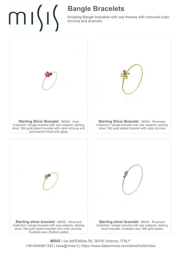 MISIS-Ama collection: a special sea bracelet collection with coulored stars and shells; available in sterling silver/18kt gold plated with cubic zirconia. Very practical clasp for an easy self wearing