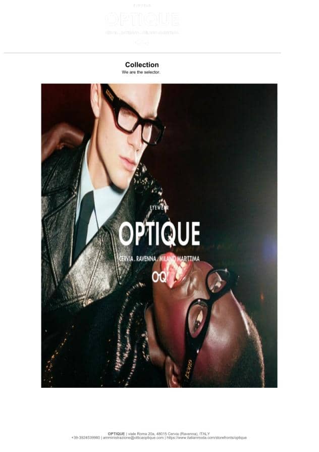 We are a company that exclusively resells fine glasses, located in 3 stores between Cervia Milano Marittima and Ravenna, our selections are also available in a selected online market place https://otticaoptique.com/